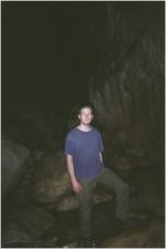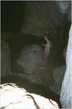 I think these pictures are sufficient proof that this was a bona-fide caving trip. I decided to do a spot of climbing down to the streamway. I didn't want to get my shoes or t-shirt wet, so I took them off. Result: some rather flattering pictures of me!