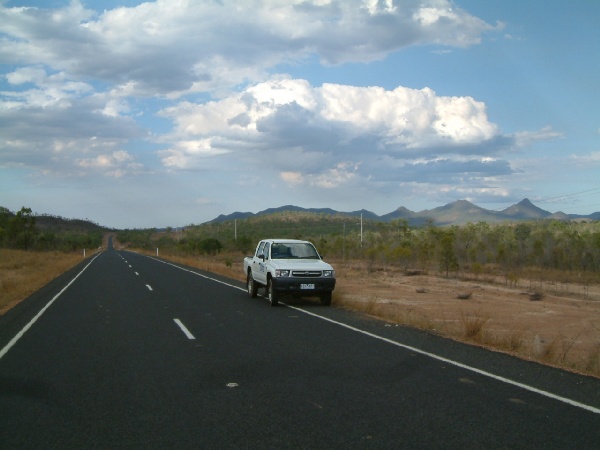 Apart from the cows, which you didn't know when to expect - you could come round a corner and they would happily standing in the middle of the road, the route to Almaden about 50km from Chillagoe was pretty fast. There were a few dead wallabies by the roadside aswell, some pretty big, probably taken out by the road trains with their huge fenders, without even noticing. From Almaden it was dirt track, but quite well graded, until the rains come that is. There were a fair number of flood ways crossing the road.