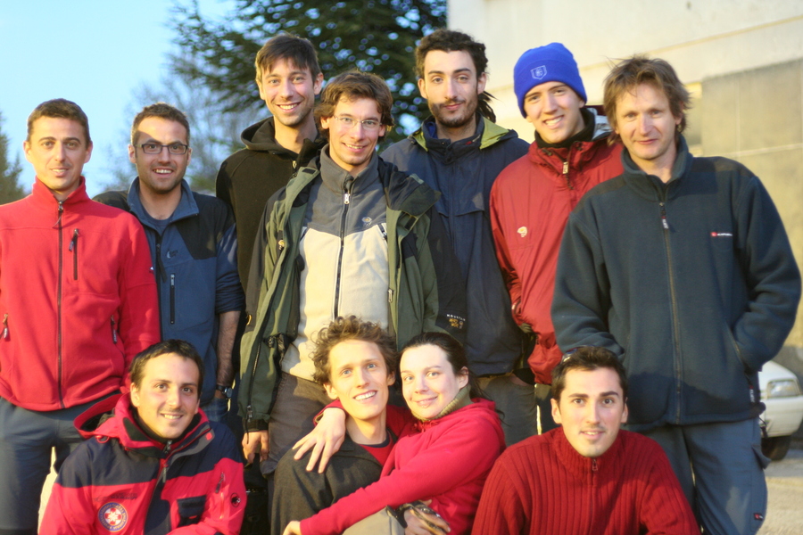 The next day I (James) wake up to a beautiful sight: sun is shining and whispy clouds are rolling over the peaks of the Velebit mountains. Inside the snoring of my fellow cavers sounds reassuring. Eventually we manage to pack for the night's camping/surveying/bolting and head towards Kita Gačešina. Unfortunately having gotten to the top of the pit, it had started snowing again and the weather forecast was rather apocalyptic. Faced with the prospect of spending the night underground to find the entrance pit covered in snow and the van locked in snow we decided to back off, even though Darko cooly informed us that -in case of being snowed in- he did not have any personal issue with abbandoning his car there, walking down the mountain and catching a bus to Zagreb.