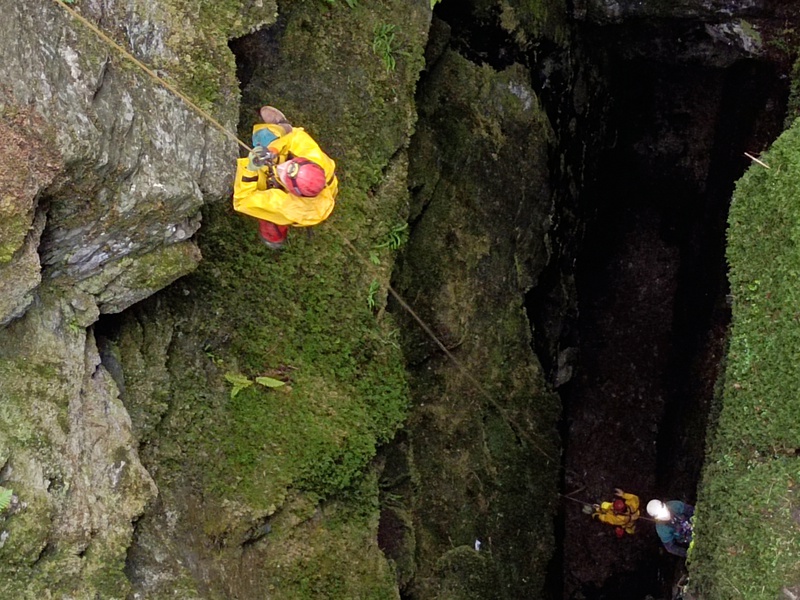 A quick and sunny walk took us over to the entrance, which Astrid rigged with confidence. Diss followed, then Jergus, Erica, Julien and I. At the tricky deviation Erica descended down a bit too far, changed over, and eventually got herself down with some difficulty, however left a knot in the deviation krab in her wake – this meant I needed to go down before Julien went down, but there wasn’t enough slack in the rope to rig the descender, so I down-prussiked until the krab, untied the knot, came back up to let Julien descend with me being able to see from above, called vaguely helpful hints to him as he navigated the deviation, and then came down myself.