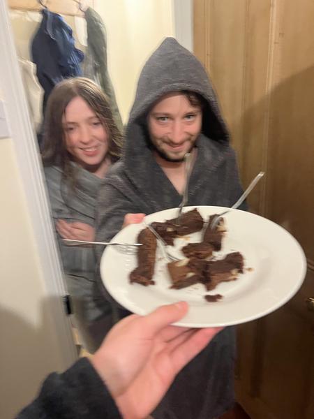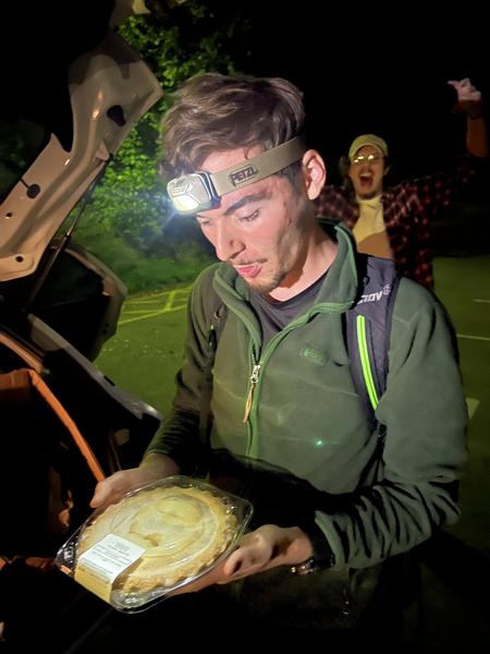 En route we stopped off at Northampton to grace with our presence a selection of our newest lags: Laura, Remi and Salwa. It turned out this plan had been made unilaterally and a very perplexed Laura and Remi appeared at their door wrapped up in dressing gowns and confused expressions of disbelief. Salwa was out having dinner with Matti who had flown over from Germany, and so Remi offered us Salwa's cake as a peace offering. Unfortunately we were so behind schedule by this point that we couldn't embarrass the couple at their romantic Nando's dinner and so we charged off into the night, making it to the unpronounceable Welsh town in the final throes of the day.