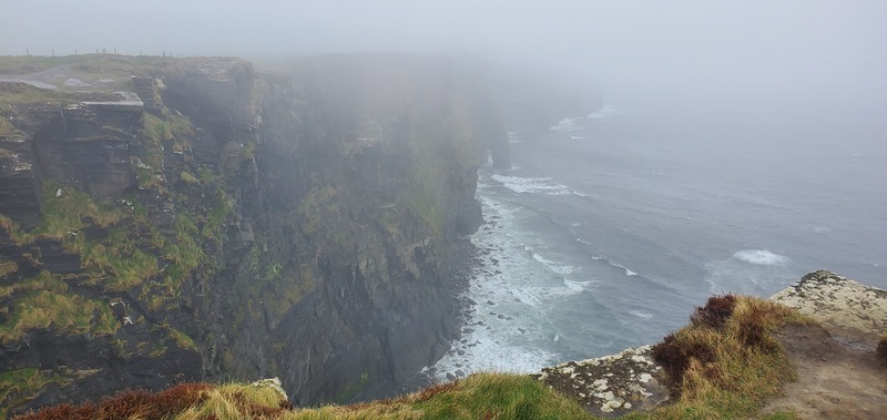 While some humans went off to Coolagh / hiking, I found myself in upper level Poulnagollum with Robin, Matti, Diss, and Linus. I was tasked with the challenge of keep a drill dry that was only wrapped in a plastic bag. But that paid off when I got to put in a bolt - yay! A traverse was created and then Robin bolted a pitch. At the bottom of this a rock flew perilously close past my face, and I decided I would rather freeze standing in water, than get knocked out. A stunning canal passage led to another small pitch, which we rigged as a pull-through. Unfortunately, we couldn’t find the graffiti from the first explorers. We were briefly reunited with big streamway that we saw on Monday but soon climbed up to traverse above, which involved a small jump across the stream. When we resurfaced, there was hail at the pitch, but luckily we were only exposed to glorious sunshine. In a bout of laziness, we all ordered fish and chips for dinner. Diss and I went for an evening walk on the Cliffs of Moher and some games followed.