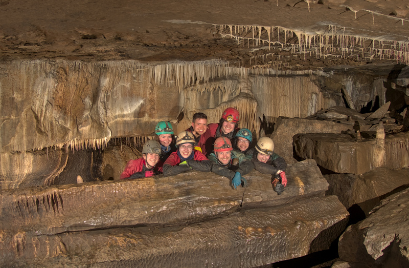 I seemed to be the only person that found this funny. We turned and made it back to the fork. I think Ana wanted to reprimand Brian for actually letting us go the wrong way without calling us back but I’m not sure if she did. Once at the main chamber Rhys faffed with lighting for many many minutes to ensure I got to crush DKP and Chris for as long as possible for our group photo.