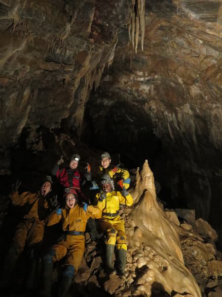 So that's what we did. I grabbed two keen freshers, convinced Tanguy that Peter and Kenneth should have a chance to lead by themselves, and soon we were in Swildon's, found the route through the entrance (wet route, lead by Tanguy), rigged the ladder (well, Tanguy did), avoided the nasty slanting rift downclimb through a nice alternative over the top (again, thanks Tanguy) found Tratman's temple (that was me, look for the nice columns before a steep route down), climbed up the phreatics, down the phreatics, pondered Blue Pencil and bailed the ducks for thirty minutes before Tanguy lead us through to Birthday squeeze, which we squozed/squizzed our way through before slipping down the Landing to Sump 1, which I stared at until I realised I was freaking out the novices and I dived through, moving quickly on the other side to warm up before we got to entrance series, checked out the long dry route (very pretty, take the left passage instead of the right which leads to the short dry route) and got out in the sunshine, home for tea and medals.