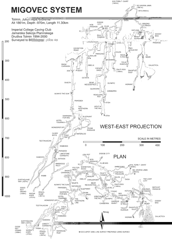 Despite adverse weather conditions, the Imperial College Migovec 2000 expedition's overall achievements were very good; around 2km of new cave was surveyed over a combined depth of 900 metres, the main system is now 11.3km long. A total of 20 people were on the mountain for between 2 and 6 weeks, with experience ranging from 1st year students to seasoned expedition cavers. Once again excellent relations were maintained with the local cavers, with two joint trips being carried out. The traditional end of expedition party, to thank the local cavers and local farmer for their invaluable help, was also very successful.