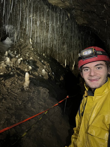 In the crawl back out, we bumped into the Flood group, who were slightly behind schedule. We agreed to do a complete group switcheroo – us out flood, them our bar – and we parted ways, them heading to the main chamber first. On the 60th Anniversary trip, Johannes had gotten extremely exhausted on the exact same trip (in bar out flood) but I, probably quite carelessly, figured it’d be fine. We made our way out, Lucie derigging, and me having lots of fun with the pantin I rightfully stole from Ellie, especially on the huge 60m pitch. Even though I consider myself the fittest I’ve ever been, I couldn’t quite manage to rope walk all the way up that, even with quick breaks at the deviations. While Julien and I were waiting at the top we chatted a bit and listened to some tunes on the phone, during which he admitted to accidentally shoplifting the day before.