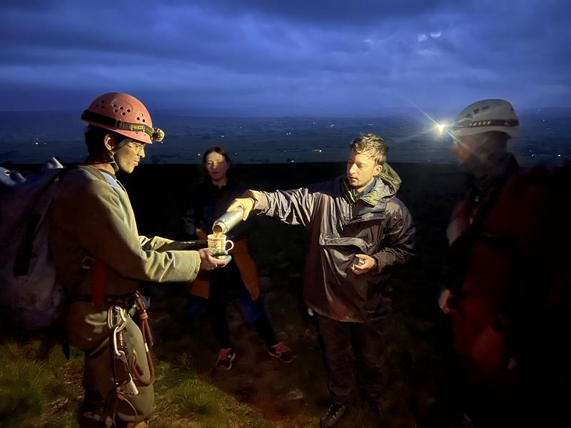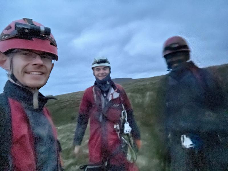 After trying my best to help Thurston cook eggy bread across 6 pans (sorry washing up team) I signed up to join Lamya's first rigging trip to Jingling, which would also be Thurston's first trip teaching someone to rig. After checking the club website I concluded that this was also my first time in Bull Pot, so many firsts all around. Esther and Hannes also liked the sound of it, as Shuttleworth sounded over-subscribed and the Davey Oli epic sounded far too high energy for them. The weather did look atrocious, and as we looked up out the window the heavens opened and we changed our plan from Jingling to Bull Pot instead. Despite my best attempts the others didn't want to sit on the new SRT wall sofa and drink tea while Lamya learnt to rig out of the rain, so we were all whisked away into the wet and miserable outside world in Davey's car.