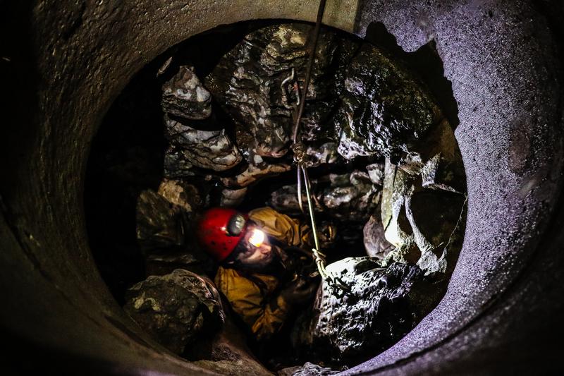 Alex was first to enter followed by Arianna. Then my go, and my first use of SRT in a cave! I rigged in and popped into the pipe which led to a rebelay about 10 foot down. Luckily Fiona was on hand to shout instructions down the pipe as I had never done a rebelay before...having clipped into the next section one descended about 20 feet more where the cave shaft suddenly expanded.