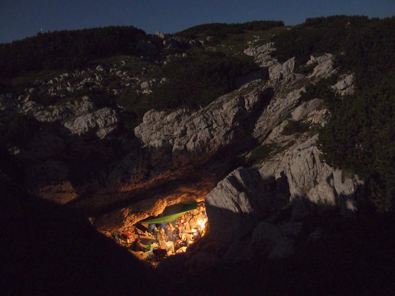 Expedition base camp is located at 1880m above sea level on the western edge of the plateau, with the bivi situated in a large shakehole benefiting from the shelter of a [distinctly unstable looking] rock bridge.